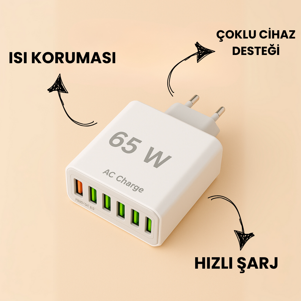 Müşterilerimizin en büyük sorunlarından biri, birden fazla hareket sensörlü LED ışığı aynı anda şarj edememekti. Anketlerle bu ihtiyacı tespit ettik ve sadece hareket sensörlü LED aydınlatmalar için özel olarak tasarladığımız 65W 5’li şarj adaptörünü geliştirdik.